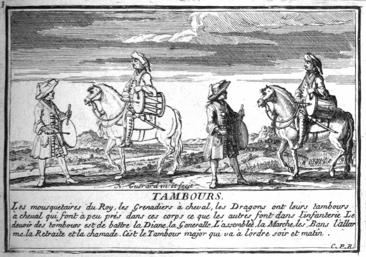 Wenn man heute eine Umfrage machen würde, welches wohl das am weitesten verbreitete barocke Perkussionsinstrument war, wäre die häufigste Antwort wahrscheinlich: die Pauke. Im deutschsprachigen Raum, in welchem „mit Pauken und Trompeten“ eine stehende Redewendung für besonders festlicher Anlässe darstellt, und die Spieler beider Instrumente im 17. und 18. Jahrhundert sogar in gemeinsamen Zünften zusammengeschlossen waren, trifft dies auch zu. Ganz anders sah es dagegen in Frankreich aus. Dort gab es keine Zünfte, die das Zusammenspiel der verschiedenen Instrumentalgruppen geregelt hätten, und es scheint, dass hier ein anderes Perkussionsinstrument viel häufiger als die Pauken – in Frankreich Timbales genannt – zum Einsatz kam: die Tambours. Beide Instrumente, Timbales und Tambours, haben einen militärischen Hintergrund, und wurden dort meist mit ihren jeweiligen „Partnerinstrumenten“ als feste musikalische Einheiten verwendet, um die jeweilige militärische Gruppierung akustisch identifizieren zu können. Neben den bekannten Kombinationen „Trompettes et Timbales“ bei den berittenen Truppen, der Kavallerie, und „Fifres et Tambours“ bei den Fusstruppen, der Infanterie, gab es in Frankreich allerdings noch zahlreiche andere viel weniger bekannte Einsatzgebiete für die Tambours, wie z.B. die Kombination der Tambours mit den Hautbois bei den berittenen Mousquetaires. Auch in zahlreichen anderen musikalischen Besetzungen sind Tambours in Frankreich belegt (siehe unten).