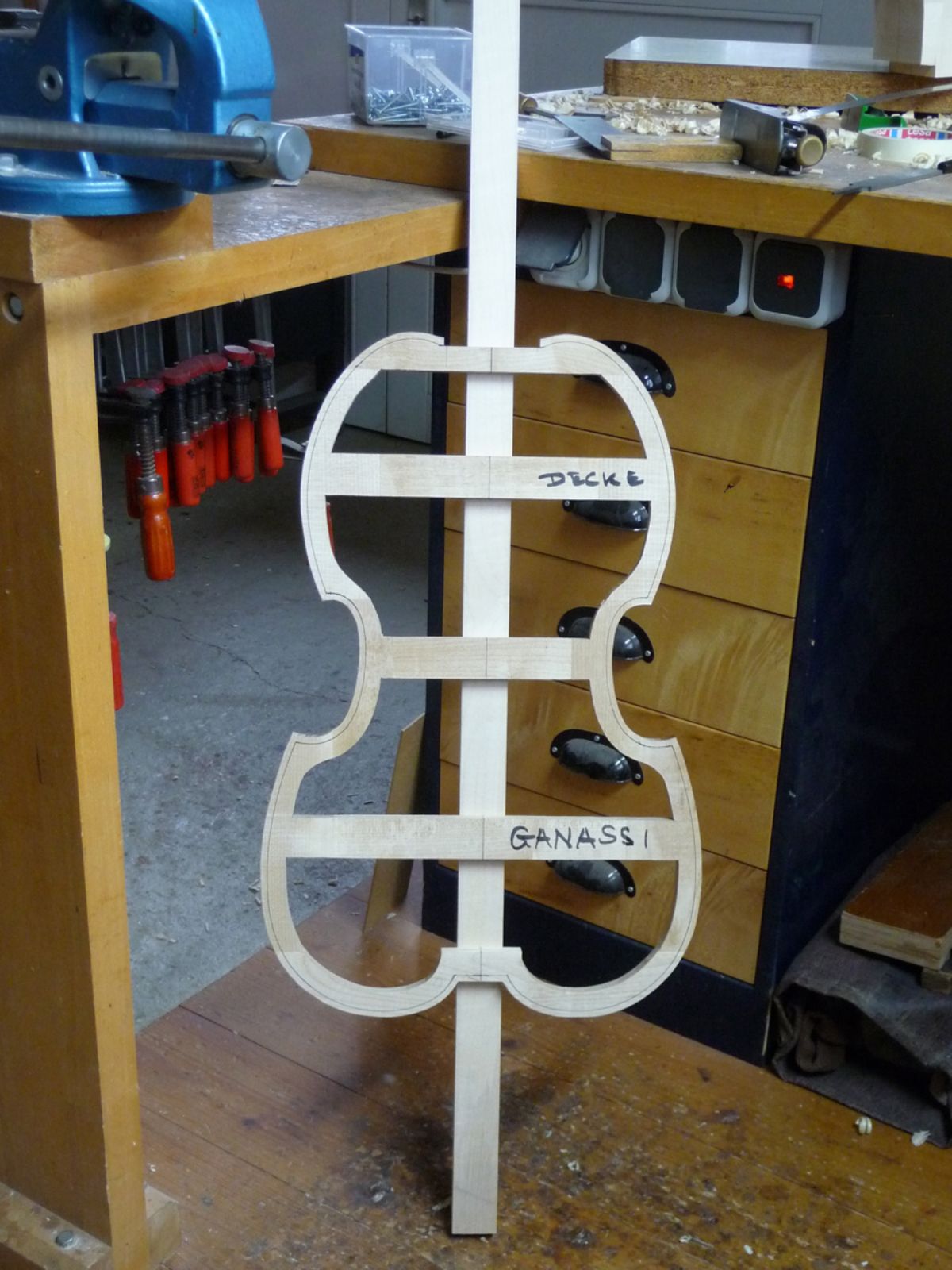 Normalerweise hat man als Lauten- und Gambenbauer ein Instrument vor Augen, das in irgendeinem Museum existiert. Auch in so einem Fall wird man noch eine Reihe individueller Entscheidungen treffen müssen – kaum ein Instrument hat einige Jahrhunderte ohne Veränderungen überstanden. Im Falle des vorliegenden Projekts war es aber gerade reizvoll, ein neues Instrument zu schaffen, zwar historisch fundiert, durch Abbildungen nahegelegt, vertraute Konstruktionen jener Zeit verwendend, durch Beschreibungen suggeriert, aber eben doch ohne konkretes Vorbild. Auch der Einsatz moderner Methoden, von der Konstruktion in einem CAD-System bis zu akustischen Simulationen vor dem eigentlichen Bauen, waren interessant.